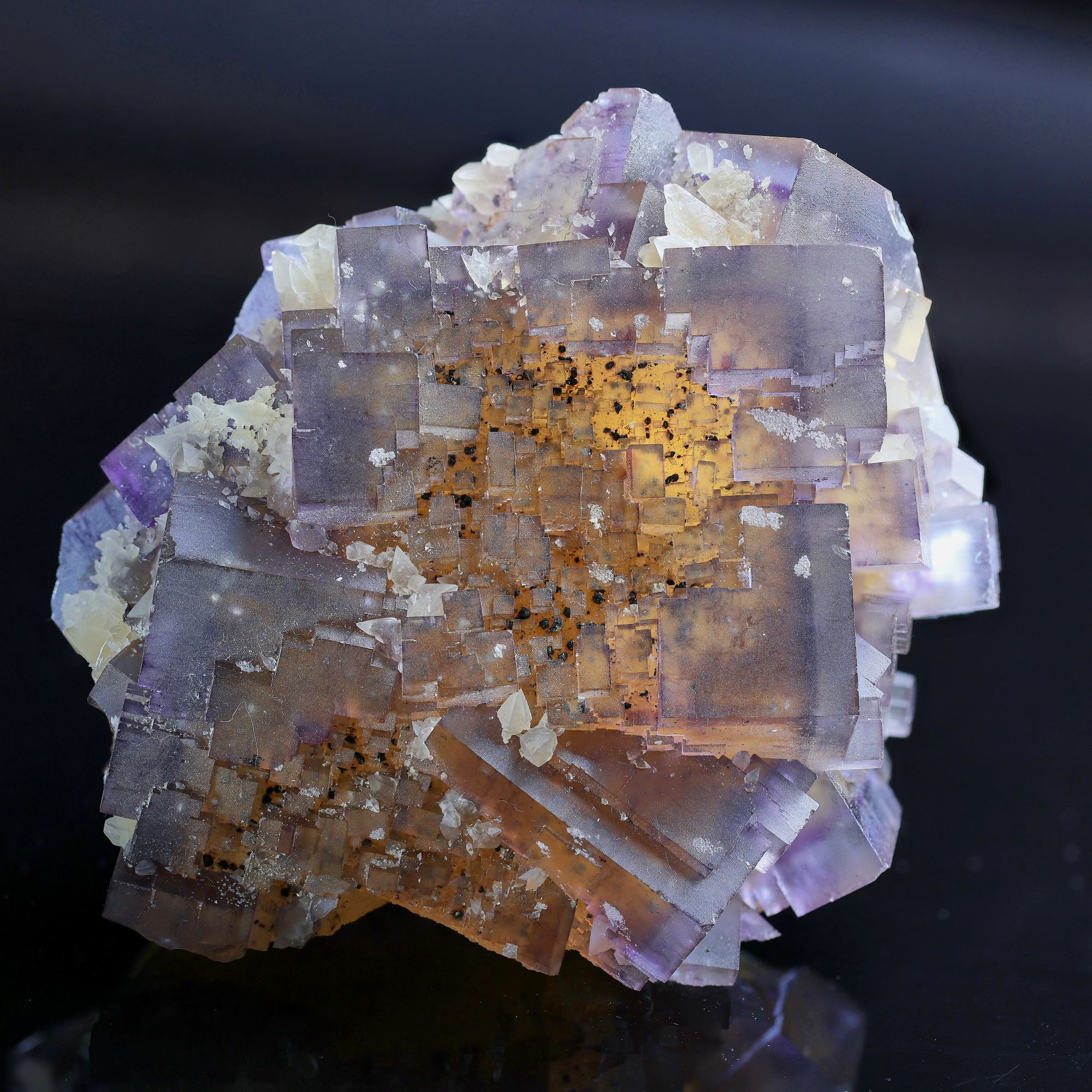Stark abgetreppter gelbe Fluoritwürfel mit blauen Kanten. Denton Mine, Illinois, USA